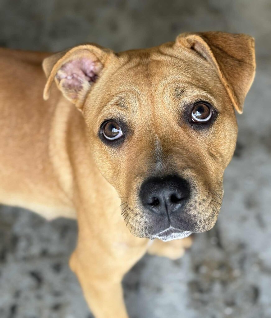 Adorable Nelly and her big brown eyes are looking for love. She is a small American Bulldog...