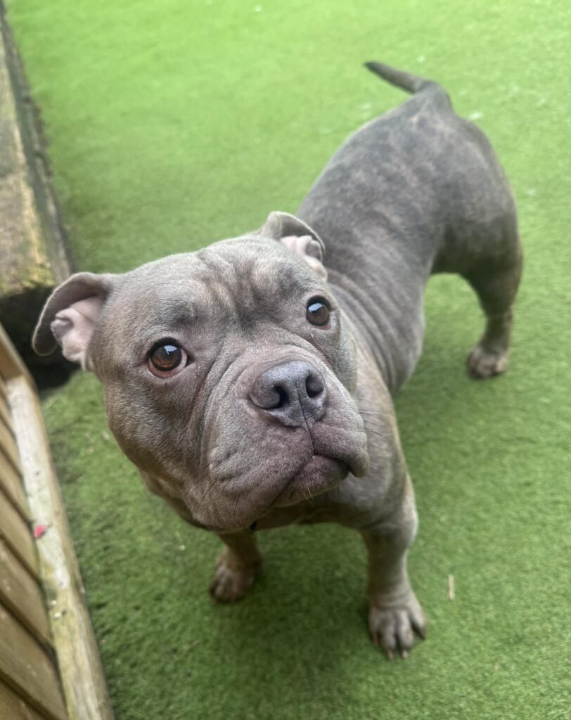 Coco is such a happy, wiggly girl who is around 3 years old. She is so lovely, well behaved and has never put a paw ‘wrong’ since being in our care. Coco would love a home who know and love Bulldogs, but this isn’t essential. She does enjoy her walks and getting out and about, but will not suit a mega active home purely due to her breed and capabilities. As with all brachycephalic breeds, she will need extra care when the weather is warm/humid. She has been happy meeting other dogs so far, and has potential to be rehomed with a friendly neutered male dog. She is not cat tested. Coco can be rehomed with children aged 8+. She is spotlessly clean in her kennel, so appears to be housetrained, and is happy to be left alone for a few hours with no issues. She really is a dream girl with tons of character and Bulldog sass!!