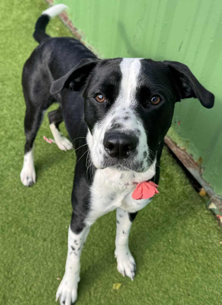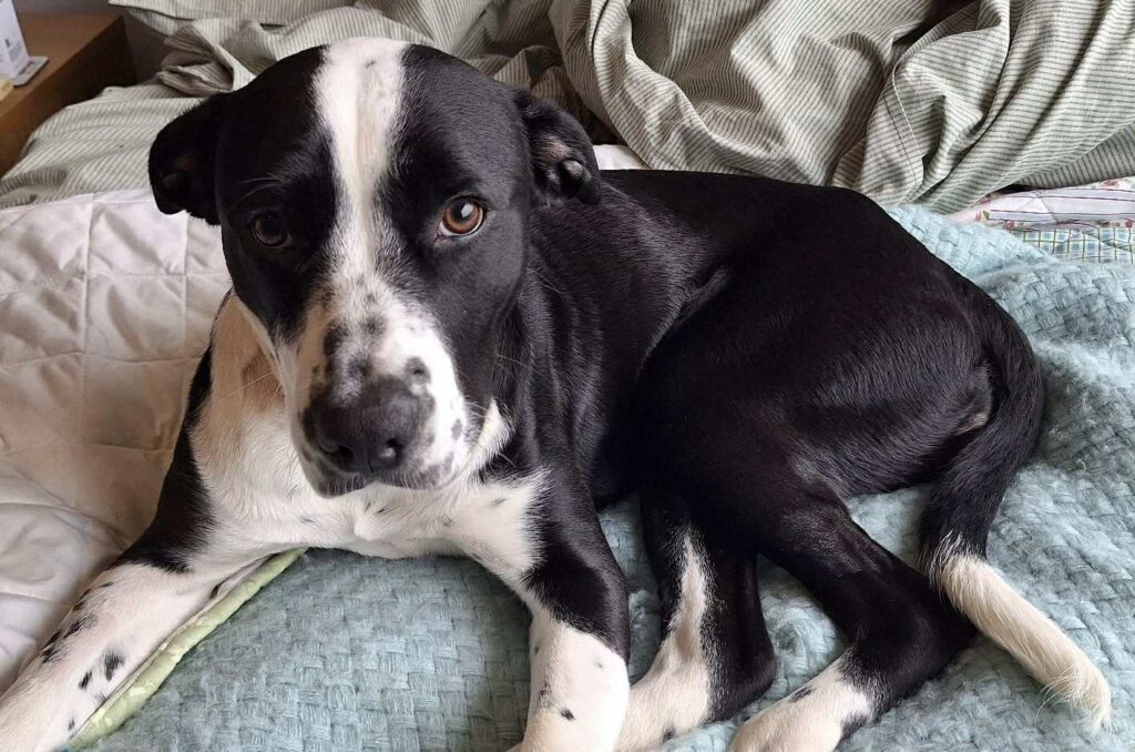 Hope is a 2 yr old medium sized Crossbreed who is searching for a very special forever home. She is the sweetest girl who is shy at first, especially of men, but soon warms up and is so loving and affectionate. Here’s where Hope needs a special and understanding home: she scuffs her back paws when she walks, and is a little ‘wonky’ when she’s walking sometimes – she has had a CT scan with our vets, which shows that she has a problem with a disc in her lower back – this will be something that she needs management for for example walking her on soft surfaces, non slip mats around the house for example. She doesn’t appear to be in any pain and is a happy, playful young girl, but she might need pain relief on/off in future if she needs it. Hope is perfect around the house – she’s housetrained, can be left for 3-4 hours with no issue and she travels very well. She is good with children, and could live with sensible dog savvy children aged 8+. She loves her walks, and can get a bit over excited when she sees other dogs, but we feel that she has potential to live with a neutered male dog of similar size. She really is the most wonderful young girl who has been dealt some bad luck in her early years, and desperately needs to find a special home who know and love the more ‘wonky’ rescue dogs.