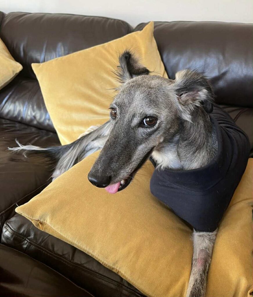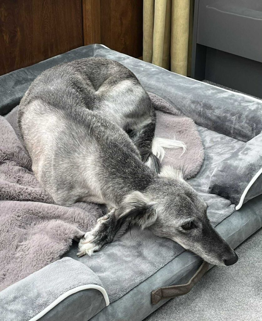 Oh so pretty Misty the Saluki cross is now ready to find a special forever home after being so brave. Misty was hit by a car when she was straying, and sadly lost her leg due to the accident – she is adapting to life on 3 legs remarkably well. She is approx 4-5 yrs old and weighs 19kg. She really is the most beautiful girl. Misty is very much a typical Sighthound – she is sensitive, delicate, very loving and definitely quite sassy!! We are hoping to find her a home who know and love Sighthounds with their little quirks and sensitive natures. Misty isn’t a fan of being left alone, so will need plenty of company in her new home. She’ll need (relatively) easy access to a secure garden, but she does manage a few steps absolutely fine. She is vocal around other dogs when she’s out and about at the moment, but we think this will ease in time once she has really settled. She has met her foster carers small dog and was fine with them, and we would consider rehoming her with a friendly neutered male dog. She is interested in watching birds/small furries, but her prey drive does not appear to be huge. Misty has been through SO much over the past couple of months, and really does now deserve to find a forever home who will give her the absolute world, just as she deserves. She’s a very special girl.
