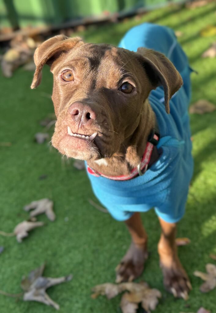 Patsy is a very lovely roly poly Staffy Crossbreed – possibly Staffy/Mastiff type. She weighs around 33kg, but does need to lose a few pounds bless her! Patsy was found abandoned in a park, with just her beloved tennis ball, which she didn’t want to leave behind. She had some big lumps that she needed vet care for, but we are delighted to say that she now has a clean bill of health and is ready to find her dream retirement home! She seems to get on well with other dogs and seems OK with cats, she does show a bit of interest in cats but no aggression, but it would have to be a confident cat who won’t be scared of having a dog around. Patsy loves pottering around the garden with her toys, she loves her walks but as she’s a bit stiff on her legs due to her age she doesn’t want to go too far – a few 20 min walks a day would be great for her. She is housetrained and doesn’t chew, she can be left for a few hours but prefers as much company as she can get! She would be best in a quieter home where she can settle into a good routine as she’s a bit confused at the minute with all the changes in her life bless her. IF YOU CAN OFFER PATSY HER DREAM RETIREMENT HOME PLEASE FILL OUT A PRE ADOPTION FORM ON OUR WEBSITE!