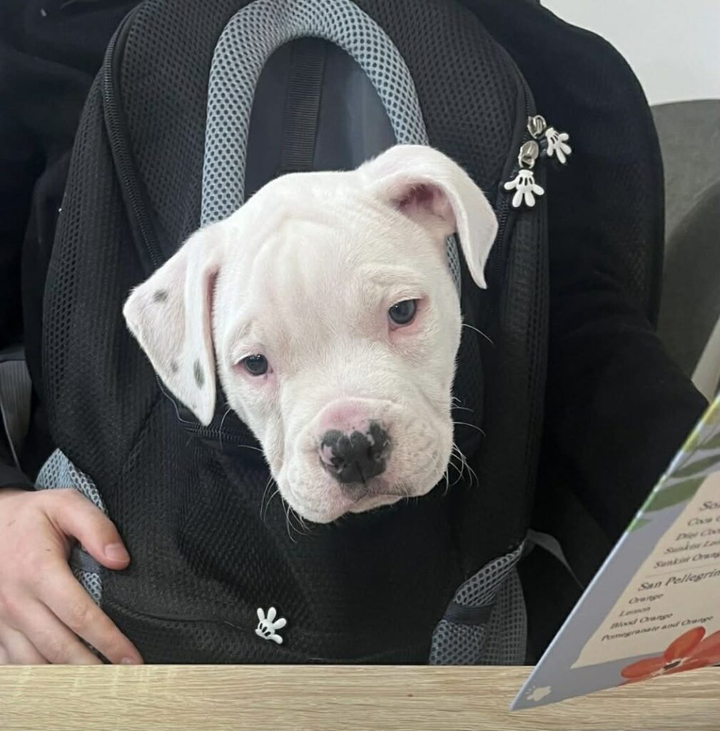 Clive is approx 8 weeks old and is the most gorgeous American Bulldog puppy. He was handed in to a vets as a stray with 2 of his siblings when they were very young. They have been raised in foster care and have thankfully done really well thanks to the TLC they have been receiving. Clive can be a little nervous and shy of new things at first, but quickly recovers. He really benefits from the company of another dog, and needs a home WITH another resident dog (a confident, social larger breed neutered female ideally). He is young enough to be rehomed with cats/other animals. He can also be rehomed with confident, dog savvy children aged 8+. Clive will need a committed family who ideally have experience of larger breeds/American Bulldogs, who can ensure he will get all get the training, socialisation, stability and care that he needs to thrive.