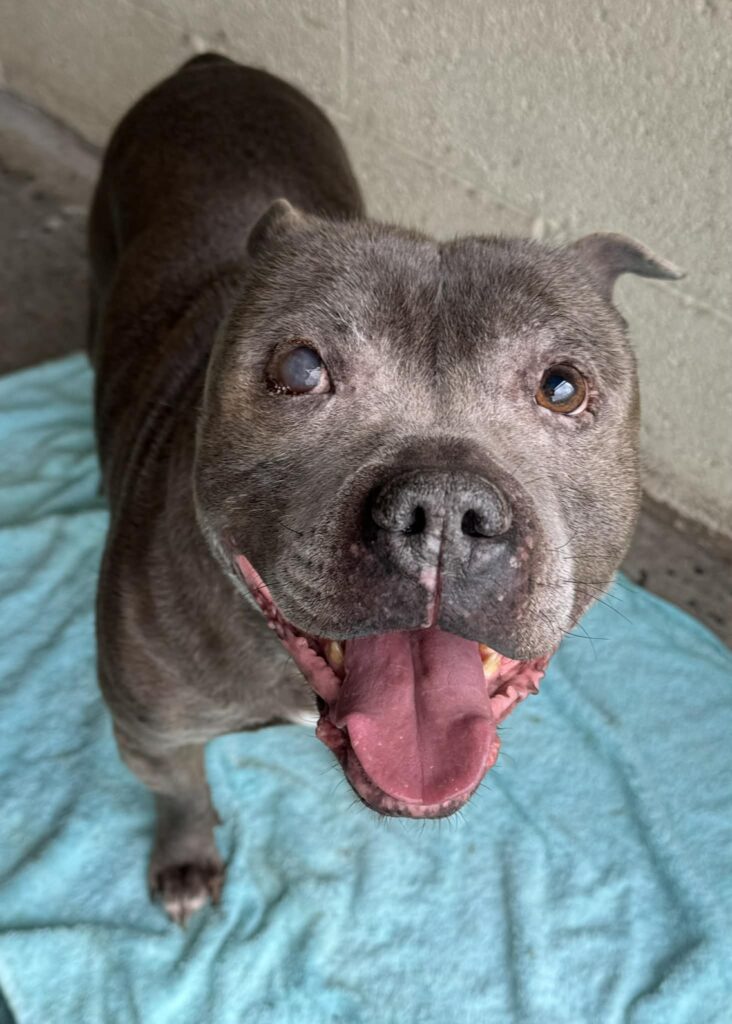 Gorgeous chunky monkey Hugo is one very loveable lump who is desperate to find a large breed loving home. He is approx 2 yrs old and large in size (approx 35kg, but needs to gain some weight!). Hugo is such a big softie who loves everyone – he doesn’t quite understand his size and thinks he’s a lapdog…! He generally walks very nicely on the lead, but can be strong when he wants to get to something, so needs someone who can confidently handle stronger dogs. He isn’t happy with other male dogs, and generally doesn’t appear very well socialised, so he gets anxious around other dogs – he will need to be the only pet, and have careful, slow socialisation to allow him to relax around other dogs. Hugo will need direct access to a totally secure garden in his new home (5 ft fencing minimum). He loooves to play and especially loves soft, cuddly toys! Hugo is a big, overgrown puppy who will need further training, but is so much fun and has SO much love to give!
