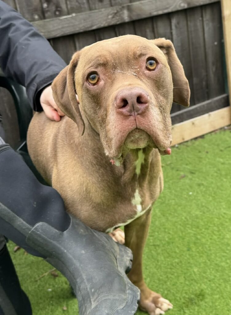Lovely Rudy is the most handsome medium/large sized Crossbreed who is around 4 yrs old. He is an absolute gent who is very well behaved. Rudy is fully housetrained, travels well, is great around the house, a good boy at the vets and just an all round ‘good boy’. He enjoys his walks and will need a good couple of walks a day, but is not a high energy/giddy boy. He is great with other dogs out and about and we would be happy to consider rehoming him with a neutered female dog. Rudy does enjoy company and may bark when left alone, but we think this will settle as he settles into a new home and routine (he is not destructive at all when left though). Rudy can be rehomed with children aged 10+. As he is a larger breed, he does have natural strength, so can be strong on his lead if he does pull, and would be best in a home who have had stronger breeds previously. He really is the most lovely boy and we would love to find him a home ASAP.