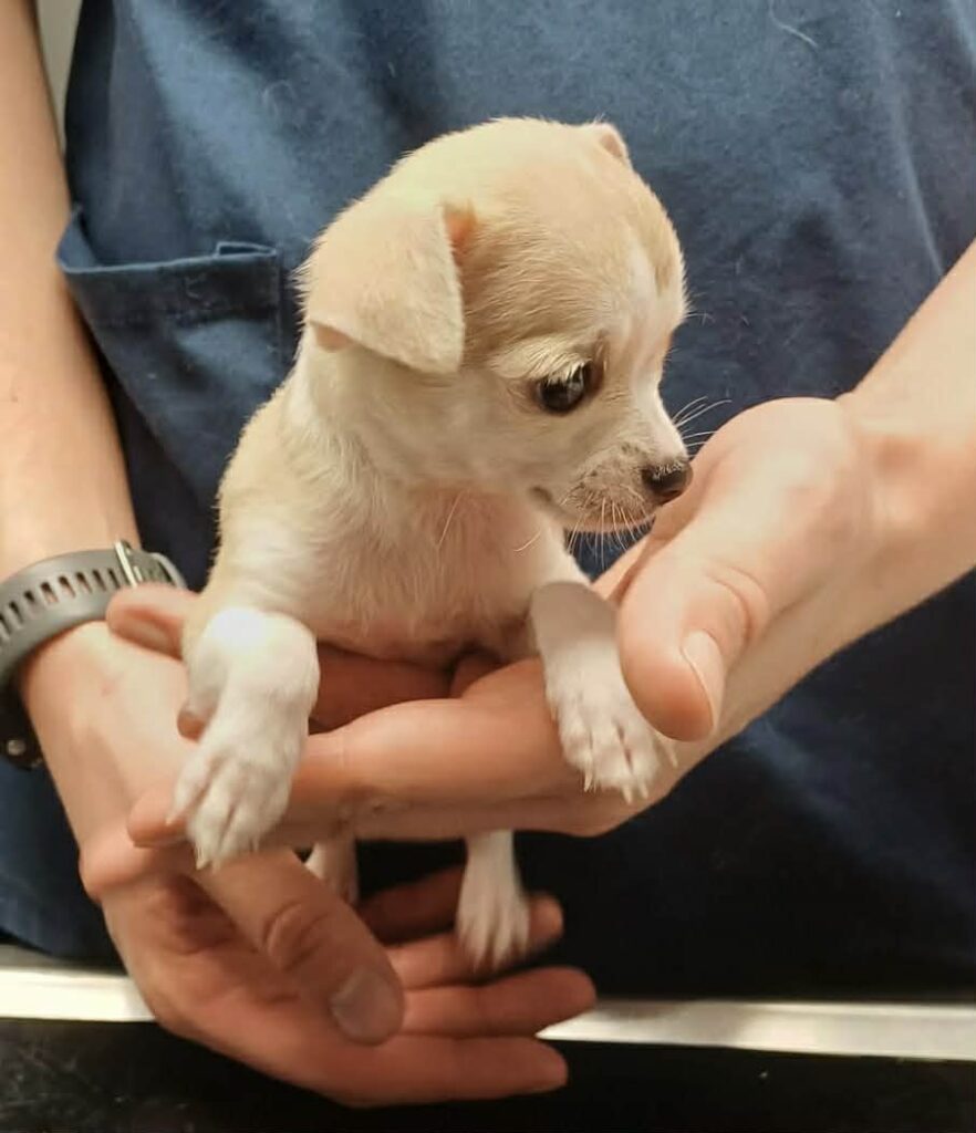 8 week old Chihuahua puppy Pixie is ready to find her forever home. She has been hand reared from a few days old as her mum sadly was unable to produce milk to feed her litter. Pixie is the mischievious, confident little lady of the litter! She will need a home where there is at least 1 other smaller breed dog (any dogs in the home must be already neutered). She can be rehomed with cats. We are hoping to find her a home with a rescue minded family who can ensure that she gets the correct socialisation to ensure she grows up into a well rounded, confident and happy little lady. Previous Chihuahua experience would be ideal.